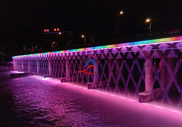 這個數控水簾噴泉是長沙喜馬拉雅音樂噴泉設備有限公司設計和制作,采用先進的計算機控制系統(tǒng),通過精確的編程實現水流和燈光的各種變化和協(xié)調。當水流自由落下時,噴頭創(chuàng)造出如雨幕般的細薄水線,輕盈而翩然。與水線相輔相成的是136米長的條形燈,猶如一道閃爍的光帶,為整個水簾噴泉增添了神秘而迷人的氛圍。