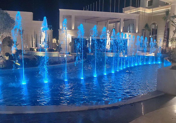 噴泉配備了136臺水泵,這些水泵分別為噴嘴提供足夠的水壓和流量,確保噴泉的運行順暢。同時,1450個LED燈巧妙地嵌入到噴嘴和水柱中,通過不同的燈光色彩和變換模式,增強(qiáng)了噴泉的視覺效果和藝術(shù)感。