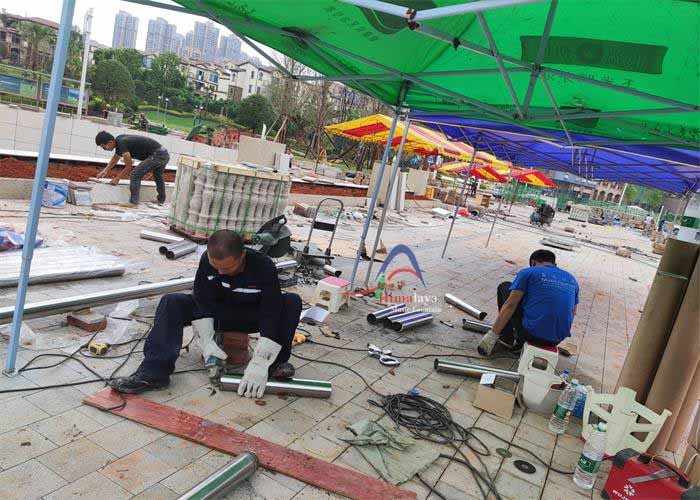 由湖南噴泉廠家長沙喜馬拉雅音樂噴泉公司設(shè)計(jì)、生產(chǎn)的中央商業(yè)小鎮(zhèn)廣場噴泉,已正式進(jìn)場安裝。