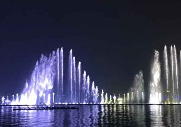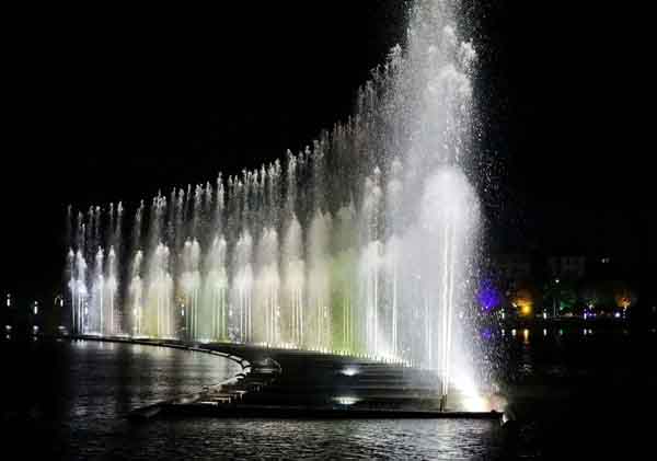 2010年,政府耗資600萬把位于牌坊廣場的噴泉重新改造,幾乎所有人都對此新噴泉有著聳高的贊賞,甚至覺得比煙花更漂亮。新音樂噴泉是漂浮式湖中大型音樂噴泉,其平臺長135米,寬10米,其中主噴高108米!為弧形設計,與廣場的弧形沿岸相呼應。 音樂噴泉水型和燈光的組合效果有幾百種之多!其變化多端、夢幻無盡、色彩斑斕的效果堪稱亞洲第一。