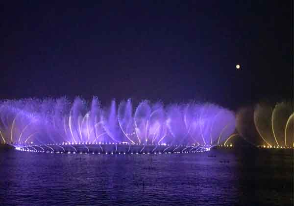 蘇州金雞湖音樂(lè)噴泉設(shè)計(jì)突破性的融合各種高科技技術(shù),讓噴泉的水型表演效果更加豐富多彩。她展示宏偉、壯觀的氣勢(shì);展現(xiàn)高科技帶來(lái)的新奇刺激;表現(xiàn)歡快、輕松的場(chǎng)景;刻畫(huà)柔美、優(yōu)雅的畫(huà)面; 融入“水火相融”的因素。每種水型的整體性強(qiáng),噴射層次分明,水型分布均衡,變換豐富,與周?chē)坝^融為一體,充分展示出了各種水形的不同韻味。