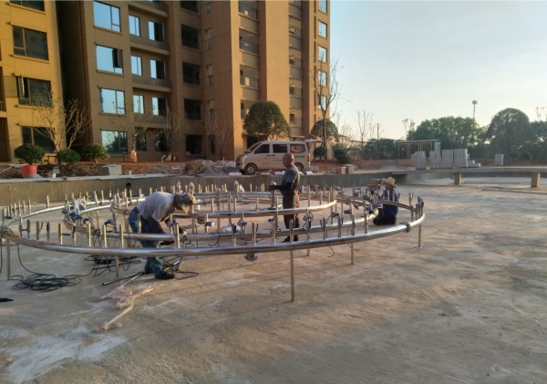 日前,由喜馬拉雅音樂噴泉公司精心設(shè)計(jì)的常德雙水池音樂噴泉已經(jīng)開始制作。這款音樂噴泉由兩個圓形水池組成,總共設(shè)有11組水型,將為常德市帶來一片新的水景盛宴。