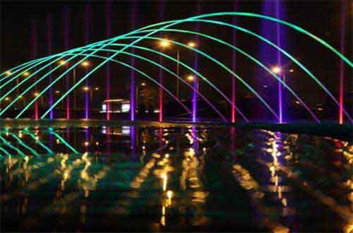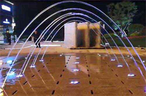 該水景水型歡快、活潑,富有情趣。主要適用于酒店或購(gòu)物中心、花園以及大型廣場(chǎng)和噴泉水景。在夜晚整條水柱通體發(fā)光,恍若光纖,光隨水泄,蔚為壯觀!水流所到之處,裝扮得異彩紛呈。