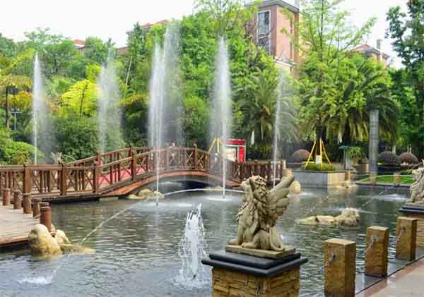 一般的小區(qū)噴泉的水面清澈而平靜,可將水榭、山石、花草等映入水中形成倒影,可增加景物的層次和美感。在設(shè)計(jì)造型的時(shí)候,一般加入雪松噴泉、多分支噴泉等小型噴水設(shè)備,讓水面若有細(xì)微漣漪,可使倒影更加生動(dòng)活潑、多姿多彩。這種小型噴泉結(jié)構(gòu)簡(jiǎn)單,造價(jià)低廉,水量和能量消耗少,運(yùn)行費(fèi)用低,無(wú)噪音,維護(hù)管理簡(jiǎn)單,所以實(shí)際應(yīng)用較多。