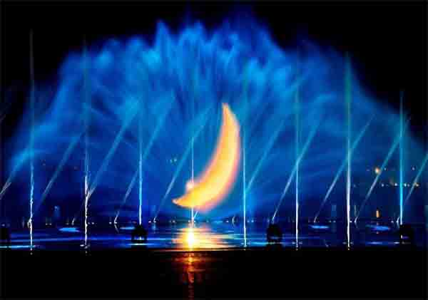 7、激光水幕電影應(yīng)與水體的水面接壤并垂直于水面,使圖像猶如活動(dòng)在地面上或水面上,立體感強(qiáng)烈且更貼近于生活。
