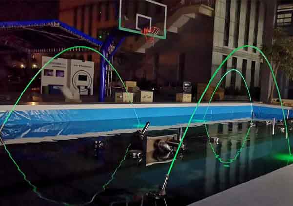 1.玻光噴泉分為水上和水下兩種,施工的時(shí)候一定不要選錯(cuò)型號(hào),旱噴廣場(chǎng)選用水上玻光噴頭,湖面、河流、水池選用水下玻光噴頭。玻光泉噴水最寬跨度不能超過(guò)6米,跨度5-6米之間尾部玻璃水柱會(huì)有點(diǎn)散水但不影響整體美觀,跨度超過(guò)6米水柱散水。